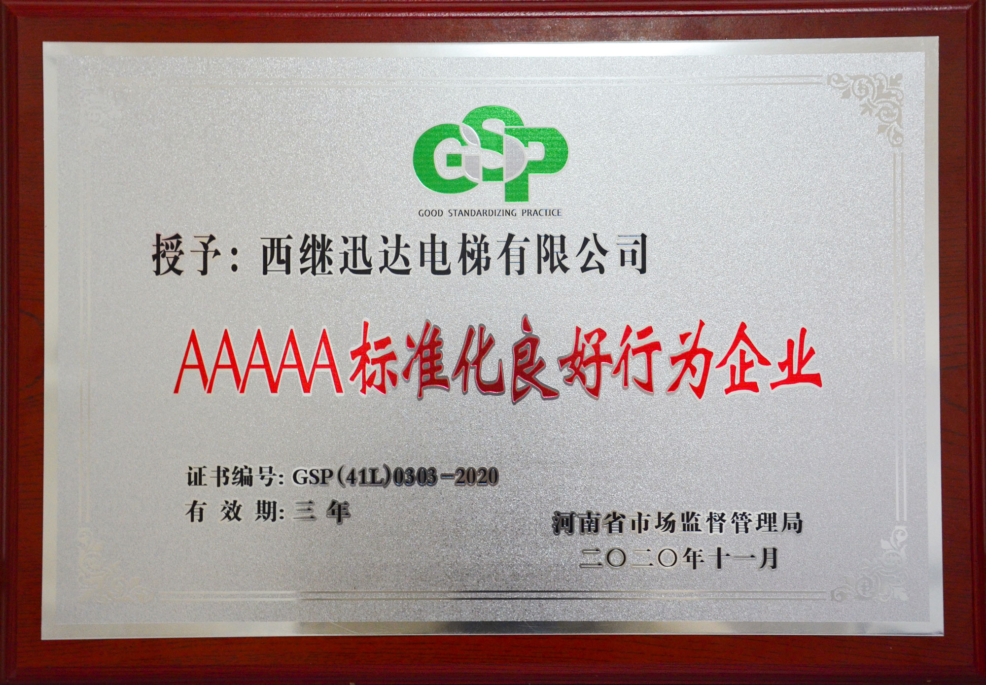 西繼迅達(dá)榮膺AAAAA級(jí)標(biāo)準(zhǔn)化良好行為企業(yè)