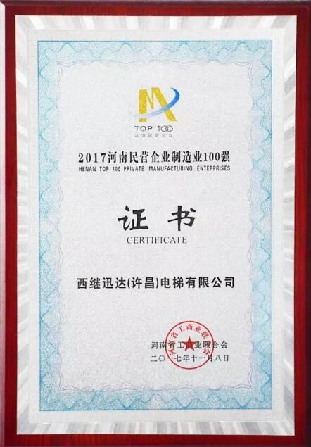 西繼迅達榮膺河南省百強企業(yè)稱號